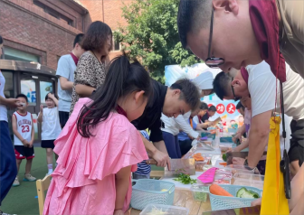 赛前准备 物品摆放整整齐齐。爸爸们大显身手,孩子们还准备了特别的蔬菜花束。