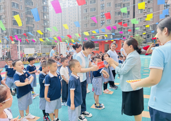 首先让我们以热烈的掌声欢迎新入园的小朋友加入我们这个温暖的大家庭!希望你们在这里活泼、健康、快乐的成长。同时也要恭喜我们的小班、中班的小朋友们升班啦,都当哥哥姐姐了。下面我宣布“北京金色摇篮二季分园秋季开学典礼”现在开始。下面有请我们的升旗手就位,升国旗、奏国歌、行注目礼。
